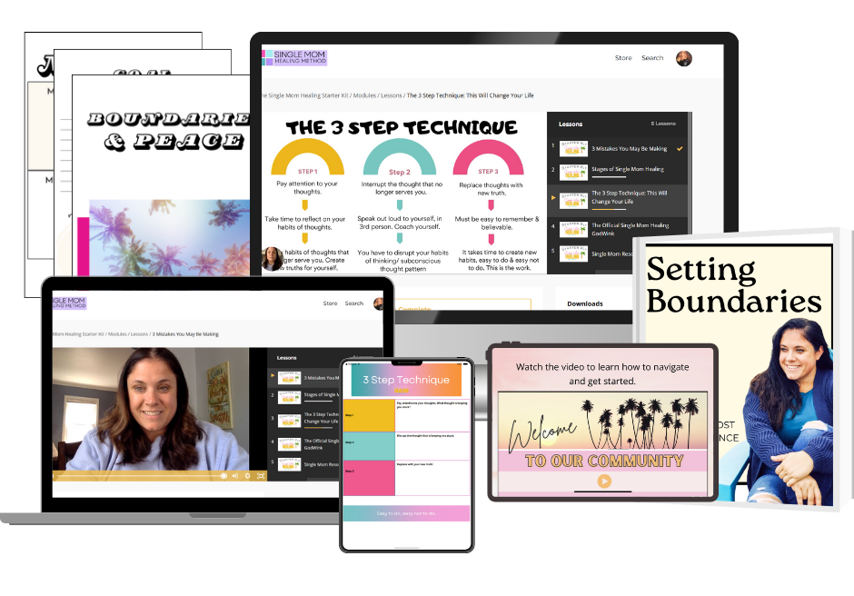 The Single Mom Healing Starter Kit is my proven method that teaches you to reclaim your confidence and control your reactions, even in your most stressful situations.